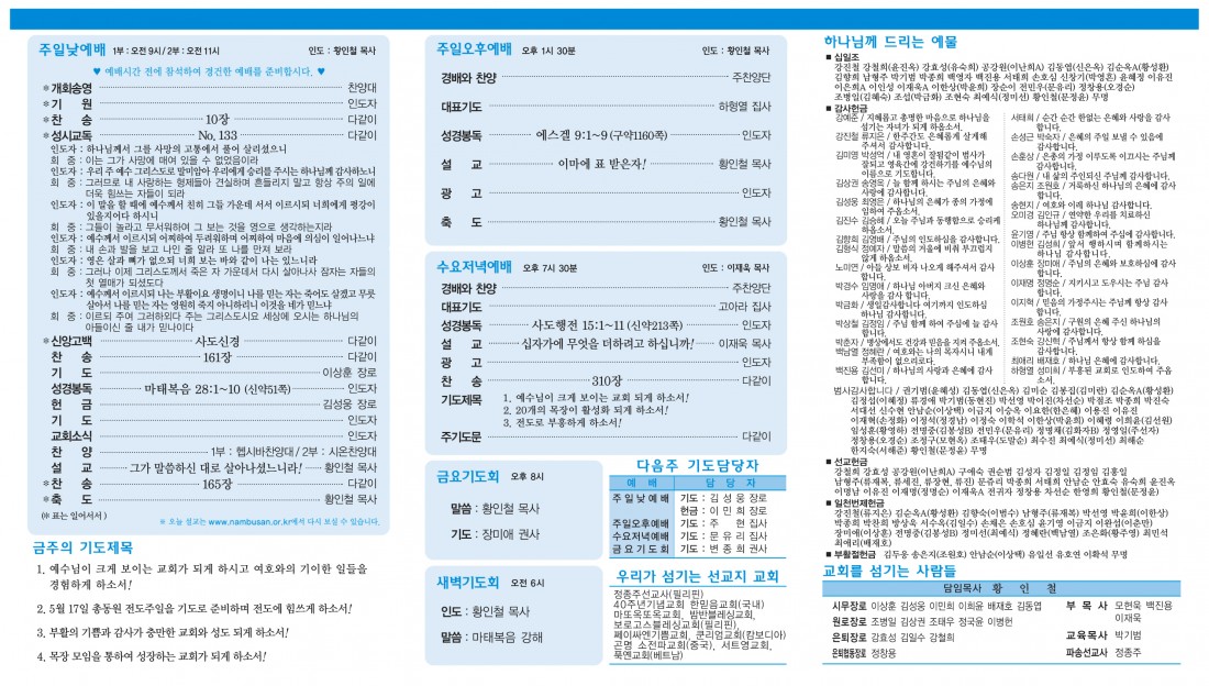 예배 및 모임안내