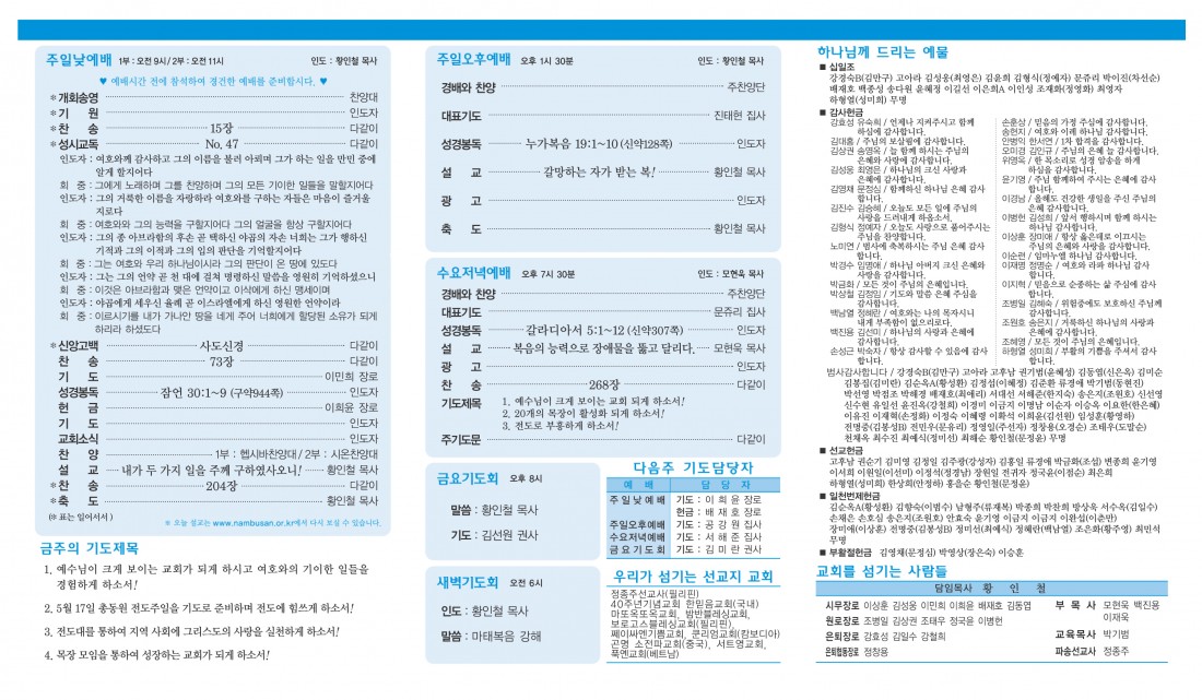 예배 및 모임안내