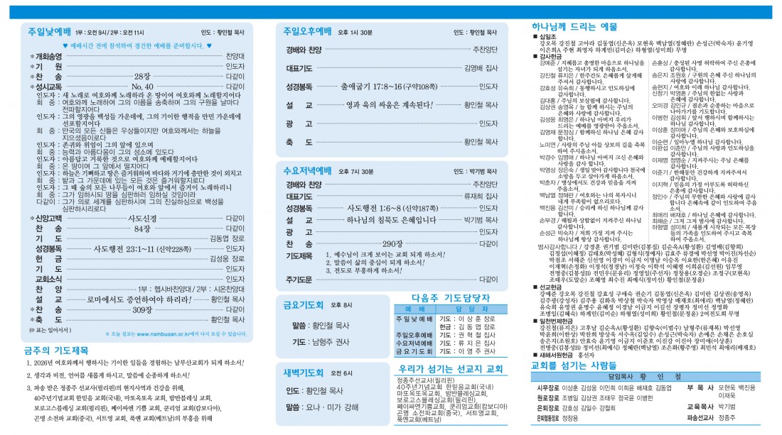 예배 및 모임안내