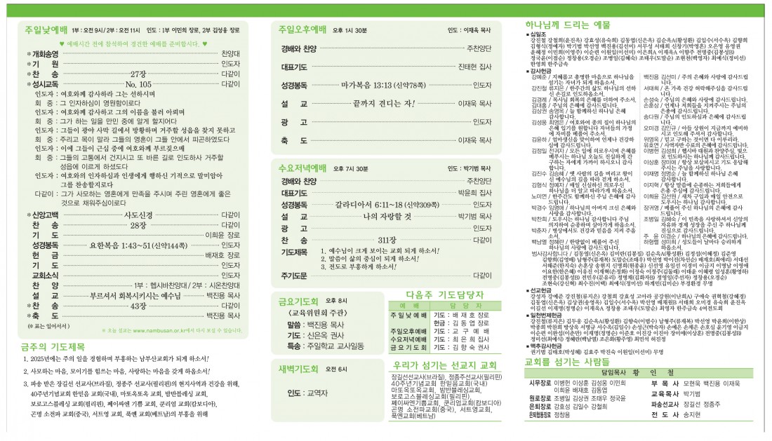예배 및 모임안내