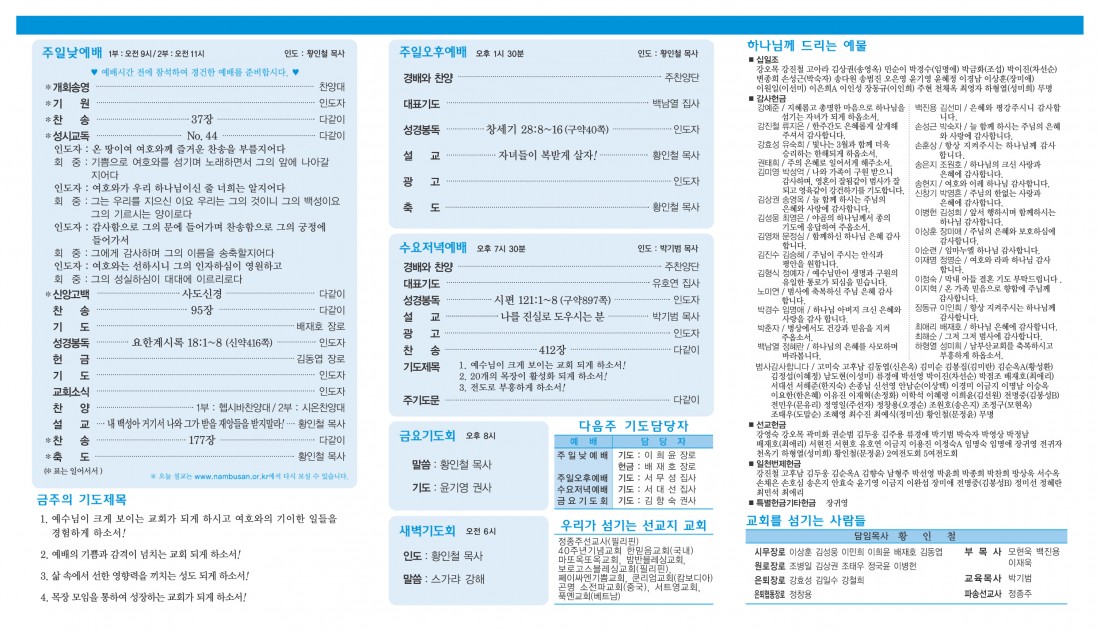 예배 및 모임안내