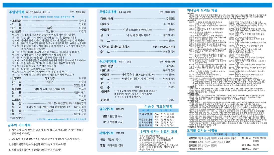 예배 및 모임안내